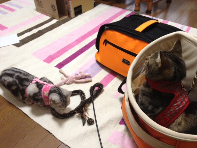 じゃらしで捕獲・強制連行しました。